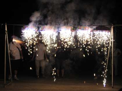 夜のお楽しみ,花火大会が行われました。少年補導の皆様からは,噴きあげ花火やナイアガラ花火,打ち上げ花火のプレゼントがありました。