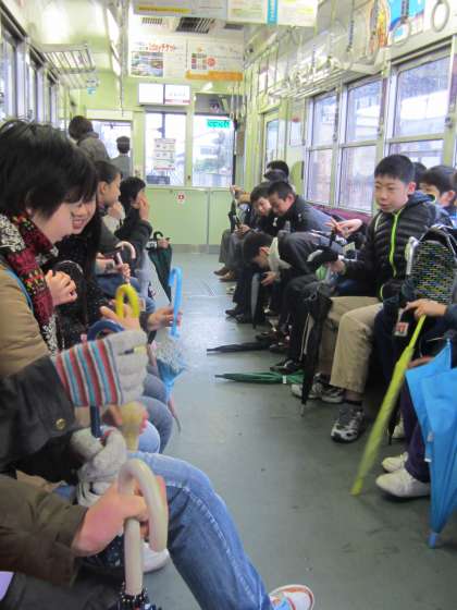 今日は朝から生憎のお天気でしたが,6年生がとっても楽しみにしていた嵐電沿線めぐりに行ってきました。