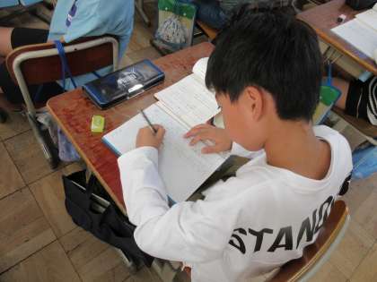 4年生は、国語科で「ごんぎつね」の学習をしています。場面ごとに、ごんと兵十の気持ちの変化を考えながら詳しく読むことで、「いたずらぎつね」の面だけではない様々なごんの姿を見つけることができています。今回は情景にも注目しています。自分が読んでいる物語の本などでも、同じように情景に着目してみてほしいです。