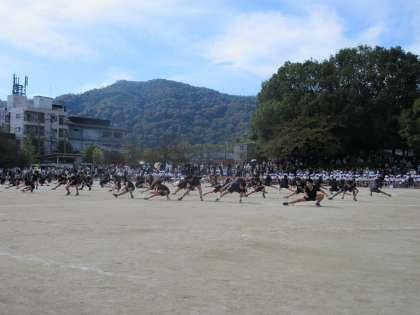 本番では、腰をしっかり落として、一つ一つの動きを大きく力強くしており、本当にかっこいい演技を見せてくれました。みんなの心が一つになったすばらしい演技でした。マスカットダンスも笑顔でかわいく、4年生のかわいい姿とかっこいい姿をたくさんの人に見てもらえたと思います。