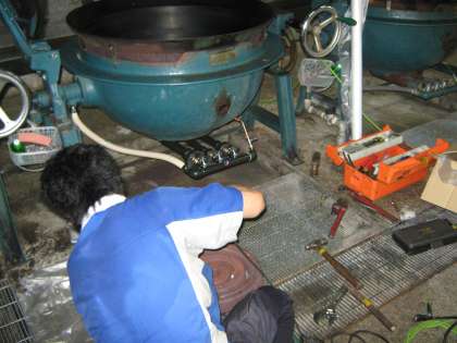 給食室の食缶消毒保管庫のドアの部分の修理と,回転釜のガスバーナーの交換とバーナーの掃除をしました。