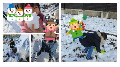 先日、雪が積もりました。1年生のみんなは大喜びです。生活科『ふゆとともだち』で冬といえば…と話をしていたところでした。さっそく雪遊びをし、冬と友だちになっていました。