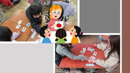 英語活動『ちょうちょをしょうかいしよう』では、“色”の英語表現をたくさん使っています。レッド・ブルー・イエロー・グリーン…、ゲームや歌を通してどんどん覚えていっています。
