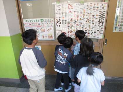 今日は、グループに分かれて校舎内をまわり、自分たちがつくった教室の案内看板を見ながら、いろいろな教室について紹介していきました。2年生は1年生の見本になれるようにと意識しながら、一生懸命に1年生をリードしていました。これからも1年生に素敵な姿を見せられるように頑張っていってほしいです。