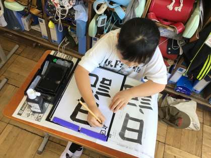 書写の学習では、「日記」という文字を毛筆で書きました。えんぴつで書くときと毛筆で書くときのちがいを意識しながら、それぞれのめあてをもって取り組みました。回数を重ねるごとに上達していく子どもたち。今回も自分の「ベスト作品」を選んで、廊下に掲示しました。