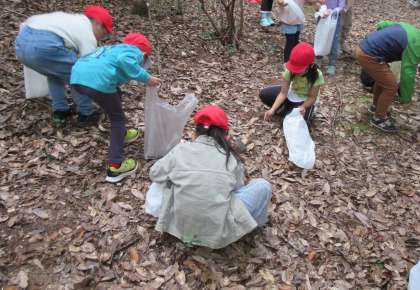 亀山公園では、思い思いに散策して、秋を見つけることや、落ち葉や木の枝などを並べて遊びました。