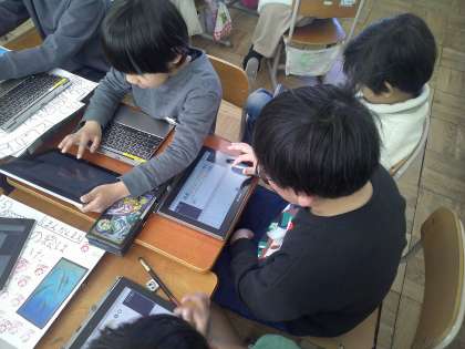 外国語活動「これなあに?」の学習で、様々な種類のクイズを作りました。相手に伝わるようにクイズを出したり、答えたりして楽しむことができました。