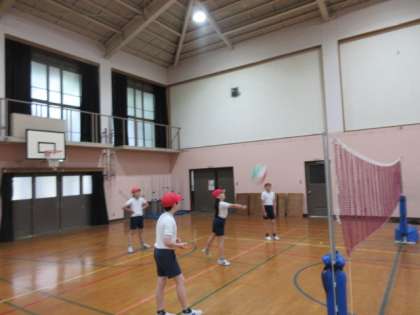 体育の学習で、ソフトバレーボールがはじまりました。ボールつなげるために、ポジションを工夫しながらゲームを進める5年生。ミスしてもお互いに励まし合いながら、楽しい雰囲気で活動しています。