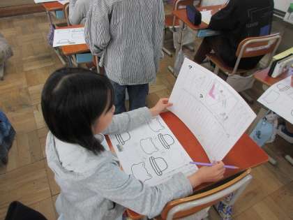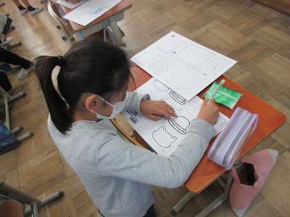 国語科「白いぼうし」の学習では、自分が感じた疑問を解決するために、全文シートを使って読み取りました。読み取ったことをカードにまとめて、交流しました。