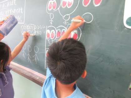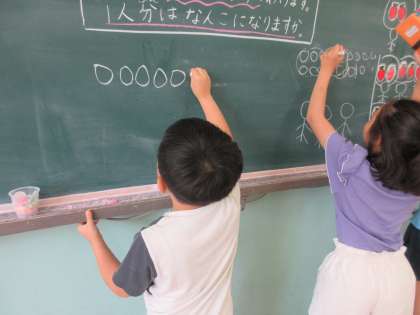 イチゴを使って割り算の学習をしました。文章を読んで、何個分けたら良いかをイチゴを配りながら考えていました!
