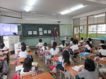 3年生は、外国語活動で「How are you?」の学習をしています。この単元からALTも来て一緒に学習しています。最初は少し緊張していましたが、ALTの先生とあいさつをしながら、楽しく活動できました。自分の気持ちを伝えるためには、表情やジェスチャーも大事だと気付いていました。これからも、相手に伝わるように工夫しながら話していってほしいです。