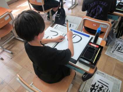 書写で毛筆の学習が始まりました。3年生は初めての毛筆の学習です。はじめに用具の確認や準備の仕方の確認をしました。いろいろな道具があるので、使い方を正しく覚えていきたいですね。