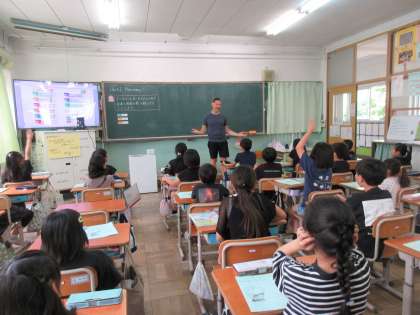 3年生では、1〜20までの数を英語で数えたり、尋ねたりすることができるように学習しています。ALTの先生と一緒に楽しみながら、活動に取り組んでいます。