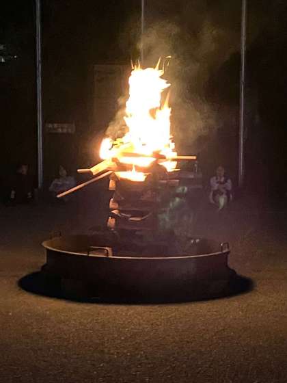 勢いよく炎が燃え出しました。みんなから「おおー」と歓声があがります!