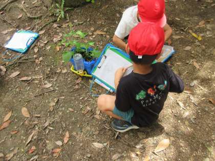 また、今日は国語科の「おおきくなった」の学習でも観察し、色や大きさ、形、数などに着目して詳しく絵や文を書くことができていました。