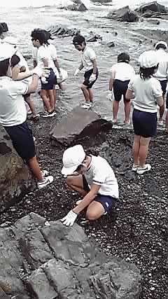 波が高く,あまり遠くへは出られません。しかし,近くの岩場,潮だまりにも,不思議な生物はたくさんいます。