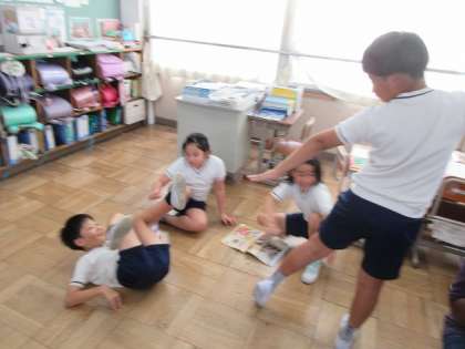 図画工作科で「体でかんしょう」の学習をしました。様々な作品の中から、自分のお気に入りの作品を一つ選び、ポーズをとりました。見るだけでなく体を使って鑑賞をすることで新たな気付きをすることができました。