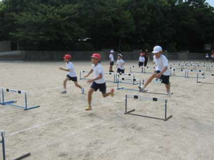 そして,自分に合うインターバルも調整しました。ハードルとハードルの間を3歩でいくためには,それなりのスピードも必要です。何度も練習しているうちに,とてもさまになっていく子どもたち。