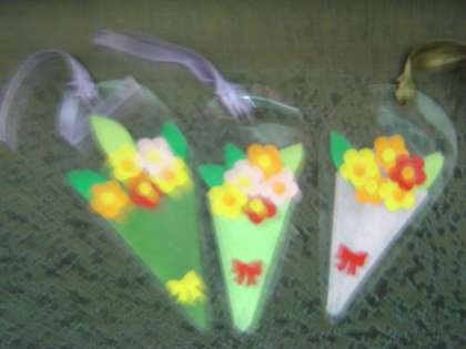 そして,ハッピーキャロットが入っていたらもらえる給食調理員さんお手製のしおり,今回はかわいらしい花束のしおりでした。何かいいことがあるといいですね♪