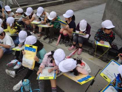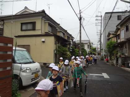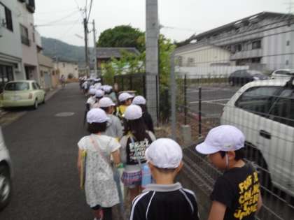 社会科の学習で嵯峨のまちたんけんに出かけました。今日は嵯峨の東方面をまわりました。雨がパラパラと降ってきたため,予定よりも短いコースになりましたが,みんなまちの様子について,たくさんのことを見つけていました。