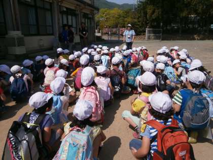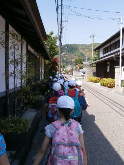 まず,学校で,正しい歩き方,遠足の注意,遠足のめあてを確認し,出発!!