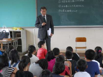 10日(月)の3、4校時に井筒八ッ橋本舗より西川洋さんをお招きし、小倉小豆についてお話をお聞きしました。日本で初めて小豆が栽培されたのが子どもたちが住むこの嵯峨の地であることも教えていただきました。また、小倉小豆のお話を通して、おもてなしの心をもつこと・自分から進んであいさつすることの大切さを教えていただきました。10月に控えているスチューデントシティにもつながる貴重なお話でした。