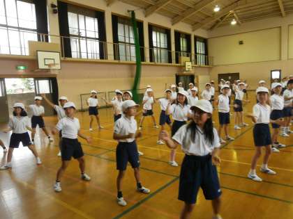 沖縄の民謡のリズムに合わせてみんなで