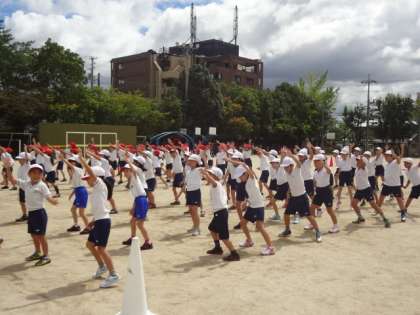 先週の金曜日,運動会の練習を初めて外で行いました。体育館と違って,まわりの友だちとの距離感がつかめず,最初はダンスの位置に並ぶのが大変でした。入場の練習を何度も行い,だんだんきれいに並べるようになってきました。