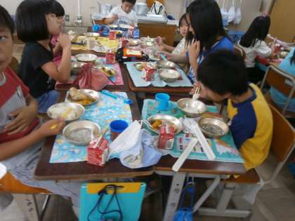 ・今日はかぼちゃのにつけがおいしかったです。なぜかというと,あまみが出ていたからです。七夕そうめんも,さっぱりかんがあったからおいしかったです。(3年2組)