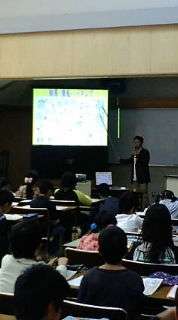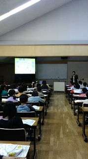 研修室で,鞍馬や貴船の歴史・生態系などのお話を聞きました。