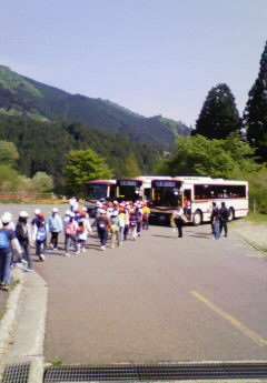 左は,山の家でバスに乗り込む子どもたちの様子です。