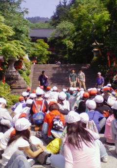 右は,鞍馬寺山門前にて,諸注意を聞く子どもたちの様子です。