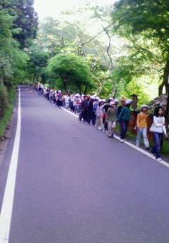 楽しい水遊びも終わり,きちんと並んで貴船口に向かう写真です。