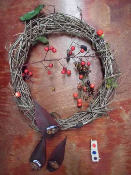 今週に入って,学校の中を散策して「秋見つけ」をしてきました。どんぐりやまつぼっくり,きれいに色づいた落ち葉がたくさん見つけることができて,みんな大喜びでした。今日は,その秋のものを使っておもちゃを作りました。どんぐりごま,まつぼっくりけん玉,落ち葉のネックレスなど,アイデアたっぷりのものがたくさんできました。
