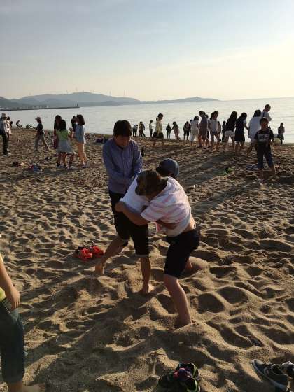 どうやら海にはまる子はいなかったようで安心しました。穴を掘ったり,貝殻を見つけたり,相撲大会が開かれたりと,満喫したようです♪