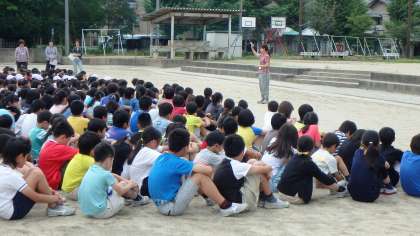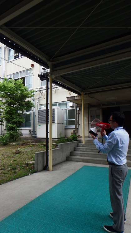 今日は,避難訓練を行いました。大地震によって,放送機器が故障してしまい,放送で指示が出せないという設定のため,教頭先生が拡声器で指示を出されました。子どもたちは,静かに指示に従い,「お(おさない)・は(はしらない)・し(しゃべらない)・も(もどらない)・て(ていがくねんゆうせん)」を守って安全に避難しました。