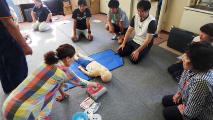 今日の午前中は,子どもたちと避難訓練を実施しました。午後からは,右京消防署の方をお招きし,普通救命研修を行いました。明日から水泳学習を始めるにあたり,教職員一同,万一の事態に備えて救急救命処置を確かめ合いました。