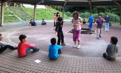そのまま坂道をくだりながらロッジをのぞいてみると,どのクラスもレクリェーション係以外の子どもたちが集まって,クラスの出し物の練習をしているではありませんか!登山で疲れているはずなのに…きっとゆっくり休んでいるだろうと思った私が甘かったです。もうキャンプファイヤーの火は,子どもたちの中で燃えているのです!!これは明日が楽しみで仕方ありません!最後の夜を最高の夜にしてくれることでしょう♪