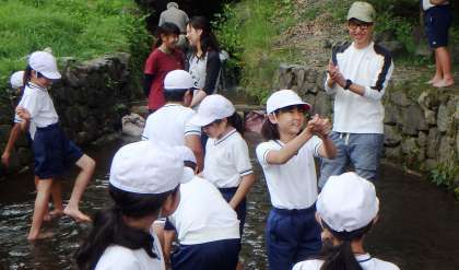 おがま池の水は冷たくて,最初は動きがにぶかった子どもたちでしたが,すばやく逃げ回るイワナを追いかけていくうちに夢中になっていました。つかもうと思っても逃げられ,つかんだと思ってもスルリと指のすきまをすり抜けるあのヌルッとした感触…でも,やっぱりつかまえたときの喜びは最高ですね♪