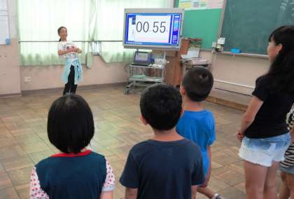 まずは,○×クイズでスタート!正解したチームから順に勢いよく体育館を飛び出して行きました。学校中に準備されたクイズやアトラクションにチャレンジする子どもたち。どれもこれもみんなのチームワークが必要となってきます。はたして結果はいかに?
