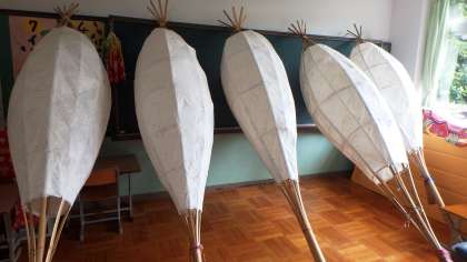 明日は,各クラス2基ずつ和紙の上に絵を描き,合計6基の竹とうろうを作り上げます。今年は,どんな作品に仕上がるのか楽しみですね♪