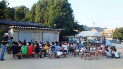 お待ちかねのバーベキューは,ボリューム満点!からあげ・ウィンナー・野菜炒めにお肉!!おにぎりも2つです。少年補導のみなさまが暑い中,さらに熱い火の番人となり,汗を流しながら子どもたちのために焼いてくださっているのです。本当に嵯峨地域のみなさまの子どもたちへの大きな愛を感じます。ありがとうございます。ごちそうさまでした♪
