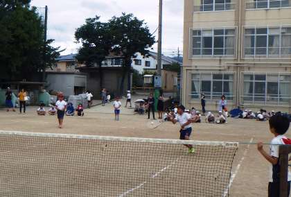 午前中は雲がかかり,比較的すごしやすかったのですが,昼からは夏の日差しが戻ってきて過酷な環境での試合になりました。そんな中でも子どもたちは,日ごろの練習の成果を発揮して大健闘でした。中には,ファイナルセットにまでもつれこむ熱戦があり,喜びの笑顔と悔しさの涙がオリンピックの感動をよみがえらせるかのようでした。みごと2連勝したペアには賞状が贈られました。