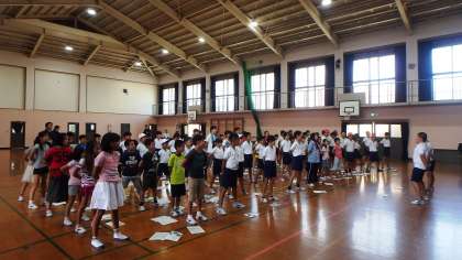運動会に向けて,今年度の応援団が初顔合せをしました。今日は,赤白応援団長の意気込みを聞いてから,声出しをしました。体育館に響き渡る元気な声!さあ,今年も夏よりも熱い運動会の季節がやってきました。これまでの応援の伝統を受け継ぎつつ,新しいチャレンジも積極的にとりいれて運動会を大いに盛り上げてほしいと思います。