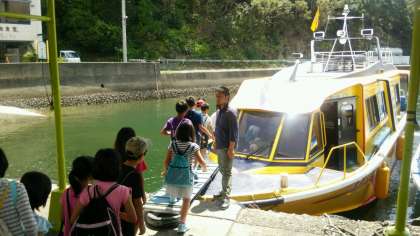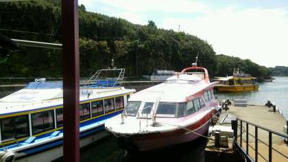 ここからは,ちょっとした船の旅。天気も良く,気持ちのいい風が頬にあたります。