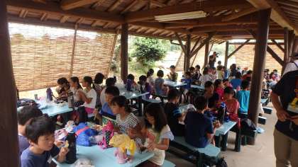 さて,子どもたちはお家で用意していただいた昼食をおいしくいただき,この後は荷物の整理と寝具準備です。こちらは,天気もよく,汗ばむほどの暑さです。みんな元気に過ごしています。
