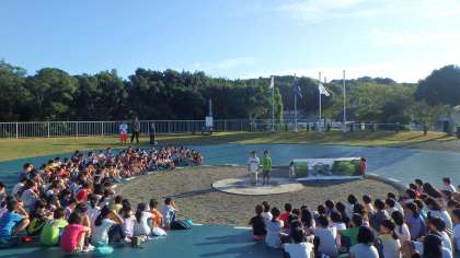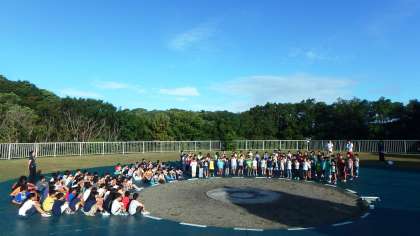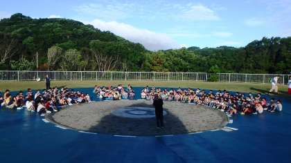 今日の朝の集いは,一緒に入所している岩倉北小学校と正親小学校と合同で行いました。校歌を高らかに歌い上げ,自慢の本館の写真を提示しながら,代表の子どもたちが立派に学校紹介をしました。