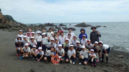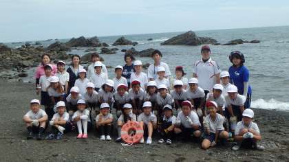 宮崎浜へやって来ました!まずはクラスごとに記念撮影 はいチーズ♪