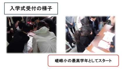 入学式の受付→受付がすんだ1年生を教室まで誘導→机まで案内