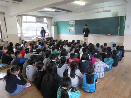 学年全員が一つの部屋に集まると,全員がさっと話を聞く姿勢をとることができ,やる気に満ちあふれた表情からも5年生としての頼もしさを感じました。